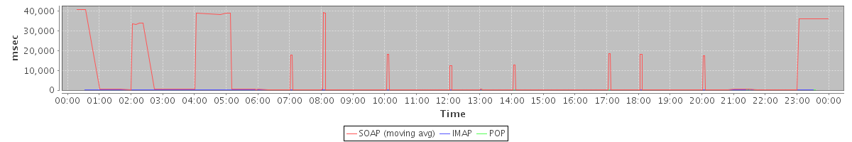 Host zm04.stanford.edu: Mailboxd: Response Time by Client Protocol