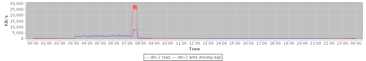 avg(dm-2 read) = 376.42 avg(dm-2 write) = 513.79