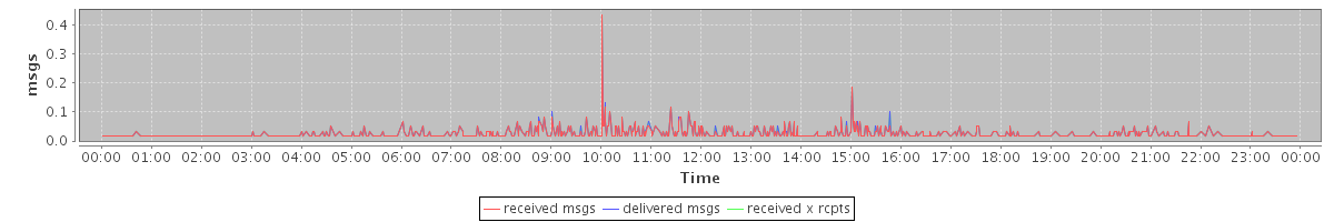 avg(received msgs) = 0.01 avg(delivered msgs) = 0.01 avg(received x rcpts) = 0.01
