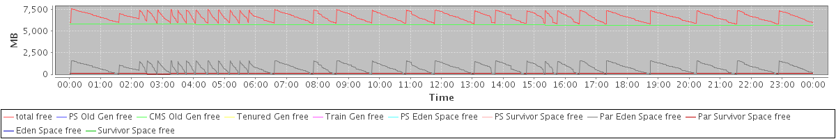 avg(total free) = 6663.38 avg(PS Old Gen free) = 0.00 avg(CMS Old Gen free) = 5744.91 avg(Tenured Gen free) = 0.00 avg(Train Gen free) = 0.00 avg(PS Eden Space free) = 0.00 avg(PS Survivor Space free) = 0.00 avg(Par Eden Space free) = 795.58 avg(Par Survivor Space free) = 122.90 avg(Eden Space free) = 0.00 avg(Survivor Space free) = 0.00