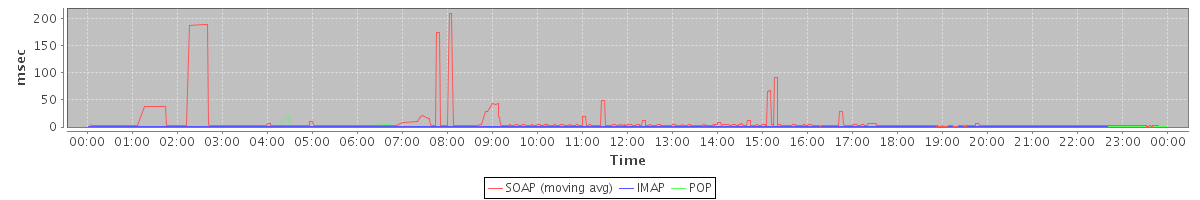 Host zm03.stanford.edu: Mailboxd: Response Time by Client Protocol