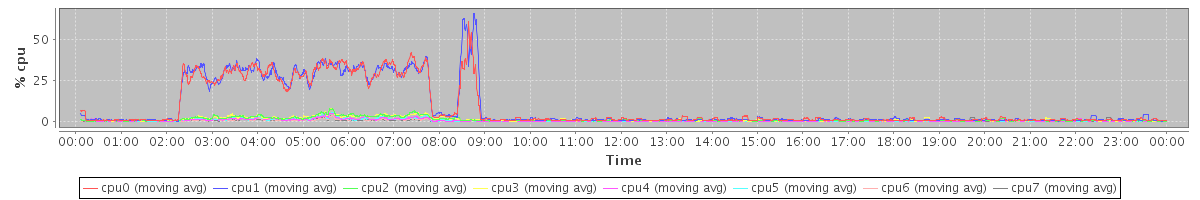 avg(cpu0) = 0.55 avg(cpu1) = 0.57 avg(cpu2) = 0.20 avg(cpu3) = 0.18 avg(cpu4) = 0.10 avg(cpu5) = 0.09 avg(cpu6) = 0.09 avg(cpu7) = 0.08