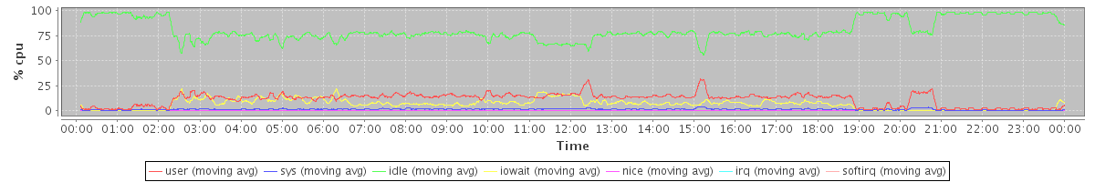 avg(user) = 11.30 avg(sys) = 1.31 avg(idle) = 81.02 avg(iowait) = 6.33 avg(nice) = 0.00 avg(irq) = 0.00 avg(softirq) = 0.03