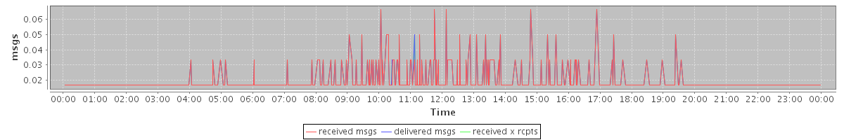 avg(received msgs) = 0.01 avg(delivered msgs) = 0.01 avg(received x rcpts) = 0.01