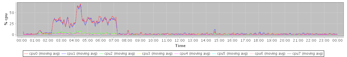 avg(cpu0) = 0.56 avg(cpu1) = 0.59 avg(cpu2) = 0.28 avg(cpu3) = 0.29 avg(cpu4) = 0.15 avg(cpu5) = 0.14 avg(cpu6) = 0.08 avg(cpu7) = 0.13