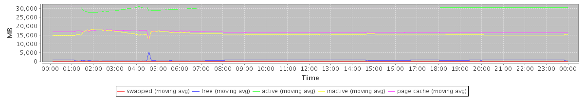 avg(swapped) = 63.31 avg(free) = 752.18 avg(active) = 30089.93 avg(inactive) = 15522.43 avg(page cache) = 16631.07