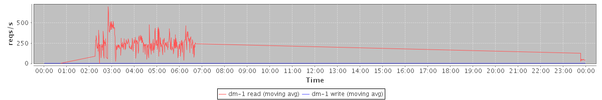 avg(dm-1 read) = 2036.78 avg(dm-1 write) = 0.07