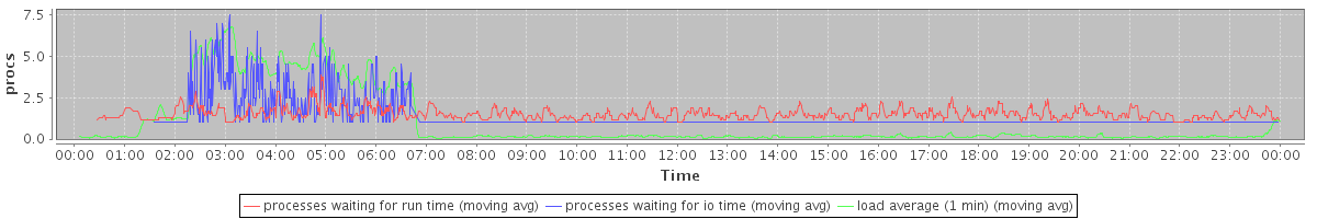 avg(processes waiting for run time) = 0.83 avg(processes waiting for io time) = 0.50 avg(load average (1 min)) = 1.01