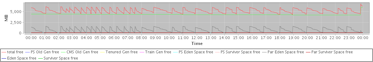 avg(total free) = 5215.24 avg(PS Old Gen free) = 0.00 avg(CMS Old Gen free) = 4336.88 avg(Tenured Gen free) = 0.00 avg(Train Gen free) = 0.00 avg(PS Eden Space free) = 0.00 avg(PS Survivor Space free) = 0.00 avg(Par Eden Space free) = 767.65 avg(Par Survivor Space free) = 110.71 avg(Eden Space free) = 0.00 avg(Survivor Space free) = 0.00