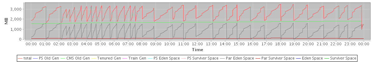 avg(total) = 2612.08 avg(PS Old Gen) = 0.00 avg(CMS Old Gen) = 1684.12 avg(Tenured Gen) = 0.00 avg(Train Gen) = 0.00 avg(PS Eden Space) = 0.00 avg(PS Survivor Space) = 0.00 avg(Par Eden Space) = 837.97 avg(Par Survivor Space) = 89.98 avg(Eden Space) = 0.00 avg(Survivor Space) = 0.00