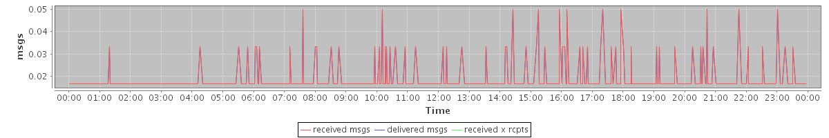 avg(received msgs) = 0.01 avg(delivered msgs) = 0.01 avg(received x rcpts) = 0.01