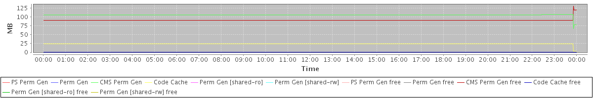 avg(PS Perm Gen) = 0.00 avg(Perm Gen) = 0.00 avg(CMS Perm Gen) = 105.71 avg(Code Cache) = 23.53 avg(Perm Gen [shared-ro]) = 0.00 avg(Perm Gen [shared-rw]) = 0.00 avg(PS Perm Gen free) = 0.00 avg(Perm Gen free) = 0.00 avg(CMS Perm Gen free) = 90.29 avg(Code Cache free) = 0.41 avg(Perm Gen [shared-ro] free) = 0.00 avg(Perm Gen [shared-rw] free) = 0.00