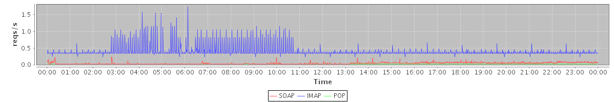 Host zm09.stanford.edu: Mailboxd: Request Rate by Client Protocol