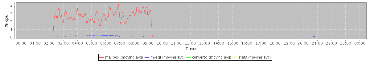 avg(mailbox) = 0.82 avg(mysql) = 0.03 avg(convertd) = 0.00 avg(stats) = 0.00