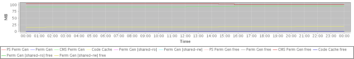avg(PS Perm Gen) = 0.00 avg(Perm Gen) = 0.00 avg(CMS Perm Gen) = 93.40 avg(Code Cache) = 17.58 avg(Perm Gen [shared-ro]) = 0.00 avg(Perm Gen [shared-rw]) = 0.00 avg(PS Perm Gen free) = 0.00 avg(Perm Gen free) = 0.00 avg(CMS Perm Gen free) = 102.60 avg(Code Cache free) = 0.24 avg(Perm Gen [shared-ro] free) = 0.00 avg(Perm Gen [shared-rw] free) = 0.00
