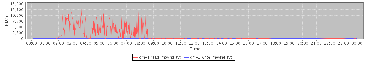 avg(dm-1 read) = 19.15 avg(dm-1 write) = 0.27