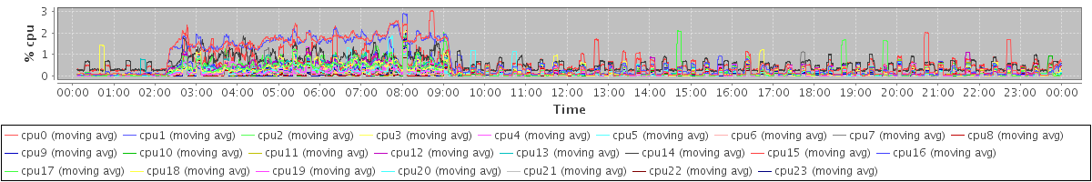 avg(cpu0) = 0.08 avg(cpu1) = 0.08 avg(cpu2) = 0.00 avg(cpu3) = 0.00 avg(cpu4) = 0.00 avg(cpu5) = 0.00 avg(cpu6) = 0.00 avg(cpu7) = 0.00 avg(cpu8) = 0.00 avg(cpu9) = 0.00 avg(cpu10) = 0.00 avg(cpu11) = 0.00 avg(cpu12) = 0.00 avg(cpu13) = 0.00 avg(cpu14) = 0.02 avg(cpu15) = 0.00 avg(cpu16) = 0.00 avg(cpu17) = 0.00 avg(cpu18) = 0.00 avg(cpu19) = 0.00 avg(cpu20) = 0.00 avg(cpu21) = 0.00 avg(cpu22) = 0.00 avg(cpu23) = 0.00