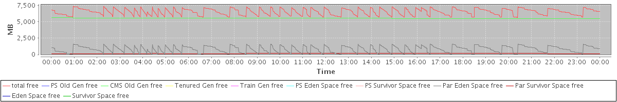 avg(total free) = 6528.91 avg(PS Old Gen free) = 0.00 avg(CMS Old Gen free) = 5557.65 avg(Tenured Gen free) = 0.00 avg(Train Gen free) = 0.00 avg(PS Eden Space free) = 0.00 avg(PS Survivor Space free) = 0.00 avg(Par Eden Space free) = 812.71 avg(Par Survivor Space free) = 158.55 avg(Eden Space free) = 0.00 avg(Survivor Space free) = 0.00