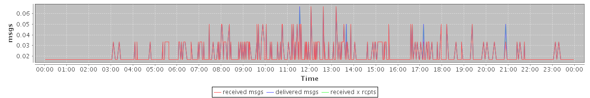avg(received msgs) = 0.01 avg(delivered msgs) = 0.01 avg(received x rcpts) = 0.01