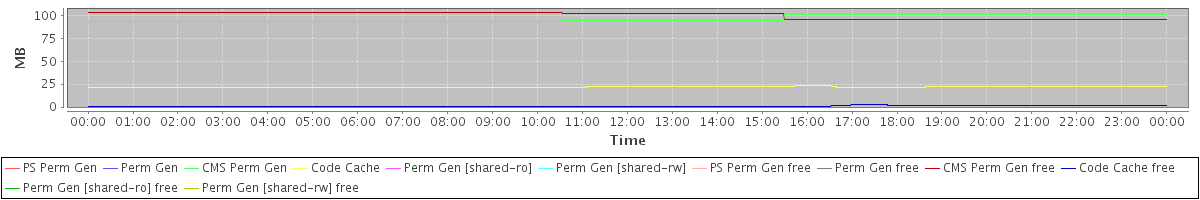 avg(PS Perm Gen) = 0.00 avg(Perm Gen) = 0.00 avg(CMS Perm Gen) = 96.28 avg(Code Cache) = 21.61 avg(Perm Gen [shared-ro]) = 0.00 avg(Perm Gen [shared-rw]) = 0.00 avg(PS Perm Gen free) = 0.00 avg(Perm Gen free) = 0.00 avg(CMS Perm Gen free) = 99.72 avg(Code Cache free) = 0.75 avg(Perm Gen [shared-ro] free) = 0.00 avg(Perm Gen [shared-rw] free) = 0.00
