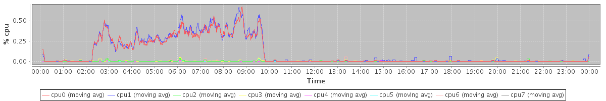 avg(cpu0) = 0.67 avg(cpu1) = 0.72 avg(cpu2) = 0.25 avg(cpu3) = 0.28 avg(cpu4) = 0.11 avg(cpu5) = 0.15 avg(cpu6) = 0.09 avg(cpu7) = 0.09