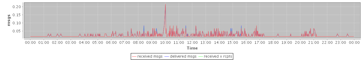 avg(received msgs) = 0.01 avg(delivered msgs) = 0.01 avg(received x rcpts) = 0.01