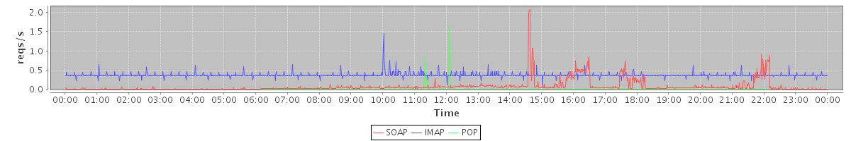 Host zm09.stanford.edu: Mailboxd: Request Rate by Client Protocol