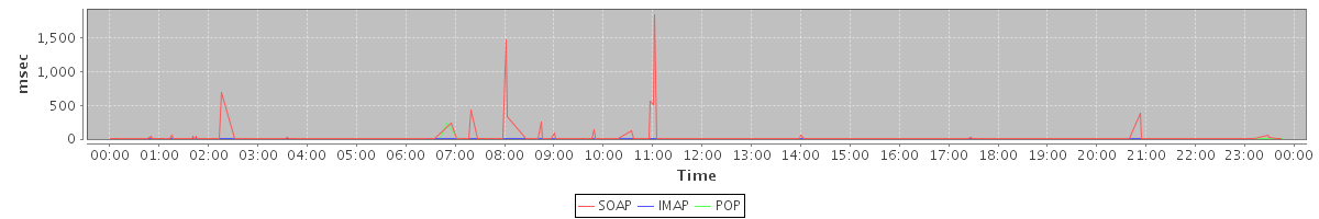 Host zm07.stanford.edu: Mailboxd: Response Time by Client Protocol