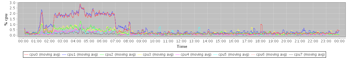 avg(cpu0) = 0.08 avg(cpu1) = 0.07 avg(cpu2) = 0.00 avg(cpu3) = 0.00 avg(cpu4) = 0.00 avg(cpu5) = 0.00 avg(cpu6) = 0.01 avg(cpu7) = 0.00