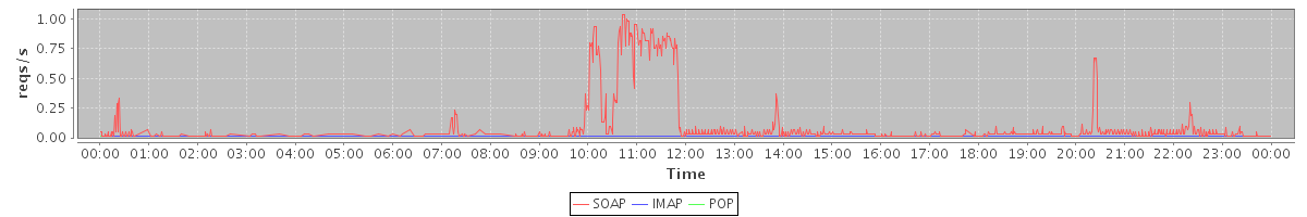 Host zm03.stanford.edu: Mailboxd: Request Rate by Client Protocol