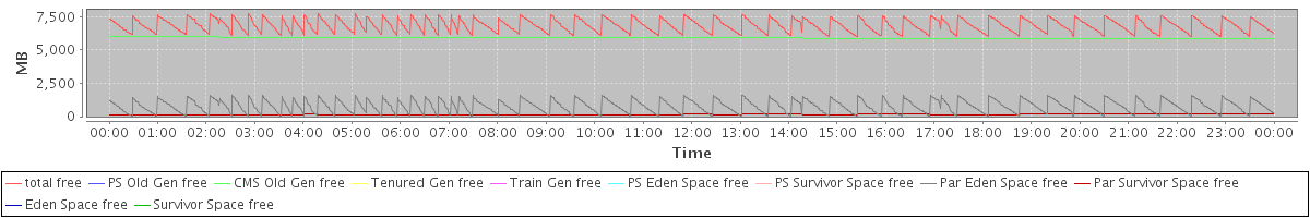 avg(total free) = 6834.46 avg(PS Old Gen free) = 0.00 avg(CMS Old Gen free) = 5891.71 avg(Tenured Gen free) = 0.00 avg(Train Gen free) = 0.00 avg(PS Eden Space free) = 0.00 avg(PS Survivor Space free) = 0.00 avg(Par Eden Space free) = 794.23 avg(Par Survivor Space free) = 148.52 avg(Eden Space free) = 0.00 avg(Survivor Space free) = 0.00
