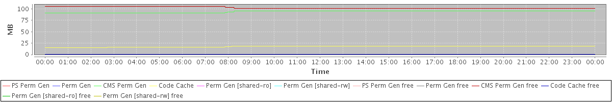 avg(PS Perm Gen) = 0.00 avg(Perm Gen) = 0.00 avg(CMS Perm Gen) = 93.82 avg(Code Cache) = 17.64 avg(Perm Gen [shared-ro]) = 0.00 avg(Perm Gen [shared-rw]) = 0.00 avg(PS Perm Gen free) = 0.00 avg(Perm Gen free) = 0.00 avg(CMS Perm Gen free) = 102.18 avg(Code Cache free) = 0.26 avg(Perm Gen [shared-ro] free) = 0.00 avg(Perm Gen [shared-rw] free) = 0.00