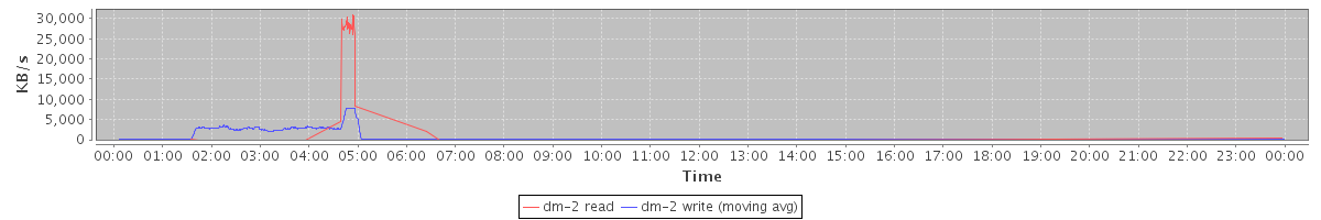 avg(dm-0 read) = 25.16 avg(dm-0 write) = 0.17