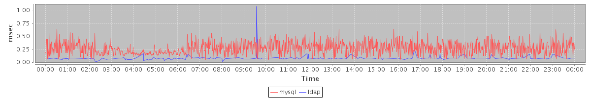 avg(mysql) = 0.27 avg(ldap) = 0.01