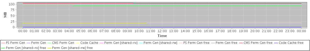 avg(PS Perm Gen) = 0.00 avg(Perm Gen) = 0.00 avg(CMS Perm Gen) = 92.64 avg(Code Cache) = 18.77 avg(Perm Gen [shared-ro]) = 0.00 avg(Perm Gen [shared-rw]) = 0.00 avg(PS Perm Gen free) = 0.00 avg(Perm Gen free) = 0.00 avg(CMS Perm Gen free) = 103.36 avg(Code Cache free) = 0.24 avg(Perm Gen [shared-ro] free) = 0.00 avg(Perm Gen [shared-rw] free) = 0.00