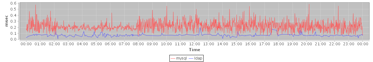 avg(mysql) = 0.22 avg(ldap) = 0.01