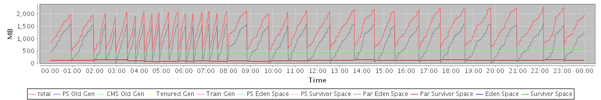 avg(total) = 1368.67 avg(PS Old Gen) = 0.00 avg(CMS Old Gen) = 428.79 avg(Tenured Gen) = 0.00 avg(Train Gen) = 0.00 avg(PS Eden Space) = 0.00 avg(PS Survivor Space) = 0.00 avg(Par Eden Space) = 814.60 avg(Par Survivor Space) = 125.28 avg(Eden Space) = 0.00 avg(Survivor Space) = 0.00