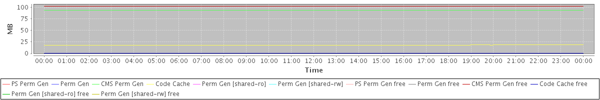 avg(PS Perm Gen) = 0.00 avg(Perm Gen) = 0.00 avg(CMS Perm Gen) = 93.85 avg(Code Cache) = 18.24 avg(Perm Gen [shared-ro]) = 0.00 avg(Perm Gen [shared-rw]) = 0.00 avg(PS Perm Gen free) = 0.00 avg(Perm Gen free) = 0.00 avg(CMS Perm Gen free) = 102.15 avg(Code Cache free) = 0.23 avg(Perm Gen [shared-ro] free) = 0.00 avg(Perm Gen [shared-rw] free) = 0.00