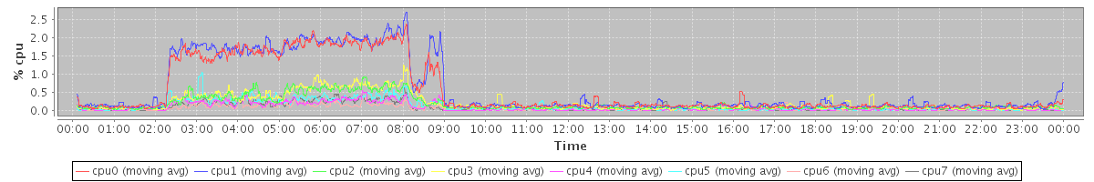avg(cpu0) = 0.00 avg(cpu1) = 0.01 avg(cpu2) = 0.00 avg(cpu3) = 0.00 avg(cpu4) = 0.00 avg(cpu5) = 0.00 avg(cpu6) = 0.00 avg(cpu7) = 0.00