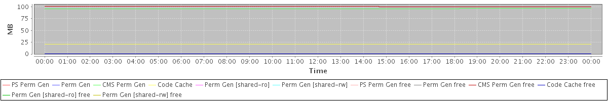 avg(PS Perm Gen) = 0.00 avg(Perm Gen) = 0.00 avg(CMS Perm Gen) = 95.71 avg(Code Cache) = 20.84 avg(Perm Gen [shared-ro]) = 0.00 avg(Perm Gen [shared-rw]) = 0.00 avg(PS Perm Gen free) = 0.00 avg(Perm Gen free) = 0.00 avg(CMS Perm Gen free) = 100.29 avg(Code Cache free) = 0.23 avg(Perm Gen [shared-ro] free) = 0.00 avg(Perm Gen [shared-rw] free) = 0.00