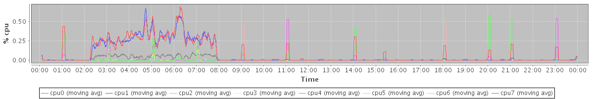 avg(cpu0) = 0.08 avg(cpu1) = 0.07 avg(cpu2) = 0.02 avg(cpu3) = 0.00 avg(cpu4) = 0.01 avg(cpu5) = 0.00 avg(cpu6) = 0.01 avg(cpu7) = 0.01