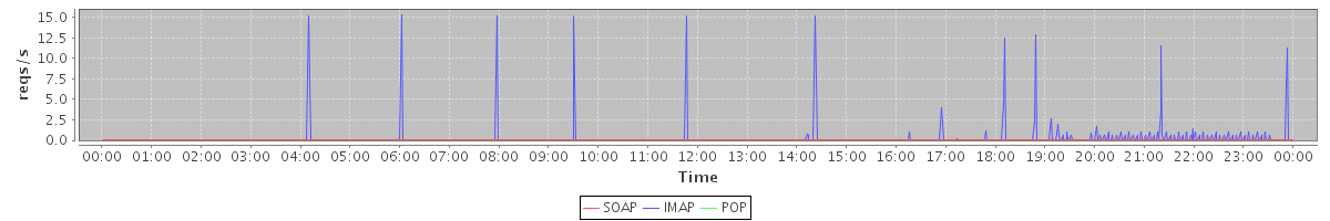 Host zm04.stanford.edu: Mailboxd: Request Rate by Client Protocol