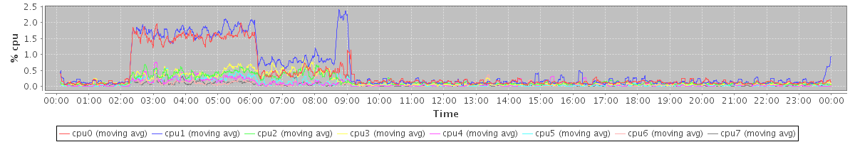 avg(cpu0) = 0.05 avg(cpu1) = 0.06 avg(cpu2) = 0.00 avg(cpu3) = 0.00 avg(cpu4) = 0.00 avg(cpu5) = 0.00 avg(cpu6) = 0.00 avg(cpu7) = 0.00