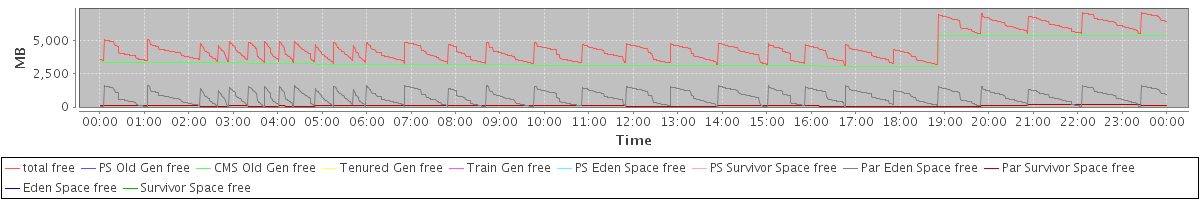 avg(total free) = 4546.14 avg(PS Old Gen free) = 0.00 avg(CMS Old Gen free) = 3662.38 avg(Tenured Gen free) = 0.00 avg(Train Gen free) = 0.00 avg(PS Eden Space free) = 0.00 avg(PS Survivor Space free) = 0.00 avg(Par Eden Space free) = 787.59 avg(Par Survivor Space free) = 96.17 avg(Eden Space free) = 0.00 avg(Survivor Space free) = 0.00