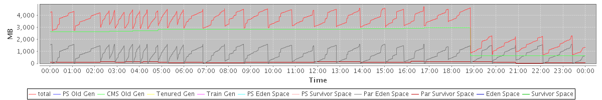 avg(total) = 3281.17 avg(PS Old Gen) = 0.00 avg(CMS Old Gen) = 2358.62 avg(Tenured Gen) = 0.00 avg(Train Gen) = 0.00 avg(PS Eden Space) = 0.00 avg(PS Survivor Space) = 0.00 avg(Par Eden Space) = 818.03 avg(Par Survivor Space) = 104.51 avg(Eden Space) = 0.00 avg(Survivor Space) = 0.00