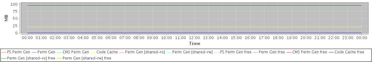 avg(PS Perm Gen) = 0.00 avg(Perm Gen) = 0.00 avg(CMS Perm Gen) = 100.28 avg(Code Cache) = 20.69 avg(Perm Gen [shared-ro]) = 0.00 avg(Perm Gen [shared-rw]) = 0.00 avg(PS Perm Gen free) = 0.00 avg(Perm Gen free) = 0.00 avg(CMS Perm Gen free) = 95.72 avg(Code Cache free) = 0.29 avg(Perm Gen [shared-ro] free) = 0.00 avg(Perm Gen [shared-rw] free) = 0.00