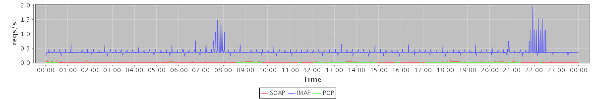 Host zm09.stanford.edu: Mailboxd: Request Rate by Client Protocol
