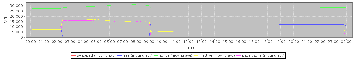 avg(swapped) = 60.92 avg(free) = 8862.56 avg(active) = 28411.52 avg(inactive) = 8984.14 avg(page cache) = 6873.29