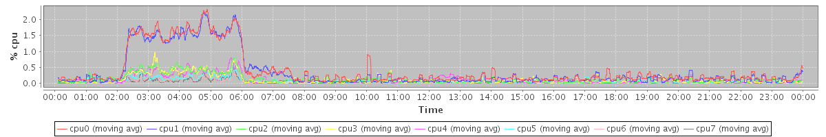 avg(cpu0) = 0.05 avg(cpu1) = 0.05 avg(cpu2) = 0.00 avg(cpu3) = 0.00 avg(cpu4) = 0.00 avg(cpu5) = 0.00 avg(cpu6) = 0.00 avg(cpu7) = 0.00