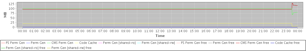 avg(PS Perm Gen) = 0.00 avg(Perm Gen) = 0.00 avg(CMS Perm Gen) = 99.42 avg(Code Cache) = 20.26 avg(Perm Gen [shared-ro]) = 0.00 avg(Perm Gen [shared-rw]) = 0.00 avg(PS Perm Gen free) = 0.00 avg(Perm Gen free) = 0.00 avg(CMS Perm Gen free) = 96.58 avg(Code Cache free) = 0.23 avg(Perm Gen [shared-ro] free) = 0.00 avg(Perm Gen [shared-rw] free) = 0.00
